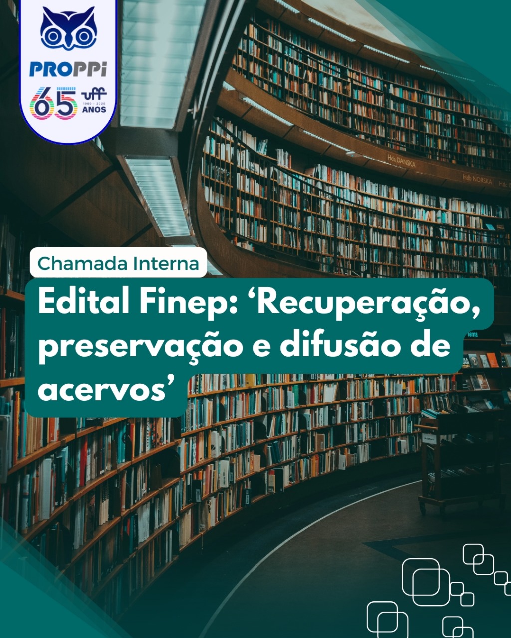 A Universidade Federal Fluminense, por meio de sua Pró-Reitoria de Pesquisa, Pós-Graduação e Inovação, informa a abertura de seleção interna para compor a Proposta Institucional no âmbito da CHAMADA PÚBLICA MCTI/FINEP/FNDCT/IDENTIDADE BRASIL - RECUPERAÇÃO E PRESERVAÇÃO DE ACERVOS 2025.