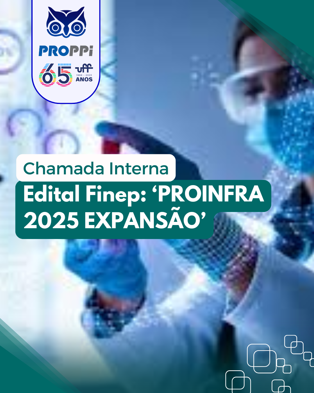 A Universidade Federal Fluminense, por meio de sua Pró-Reitoria de Pesquisa, Pós-Graduação e Inovação, informa a abertura de seleção interna para compor a Proposta Institucional no âmbito da CHAMADA PÚBLICA MCTI/FINEP/FNDCT – INFRAESTRUTURA DE PESQUISA – PROINFRA 2025 EXPANSÃO.